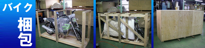 バイクや車、重機など特殊なものから家電のような一般的な荷物など、様々な荷物をお客様に代わって丁寧に梱包いたします。